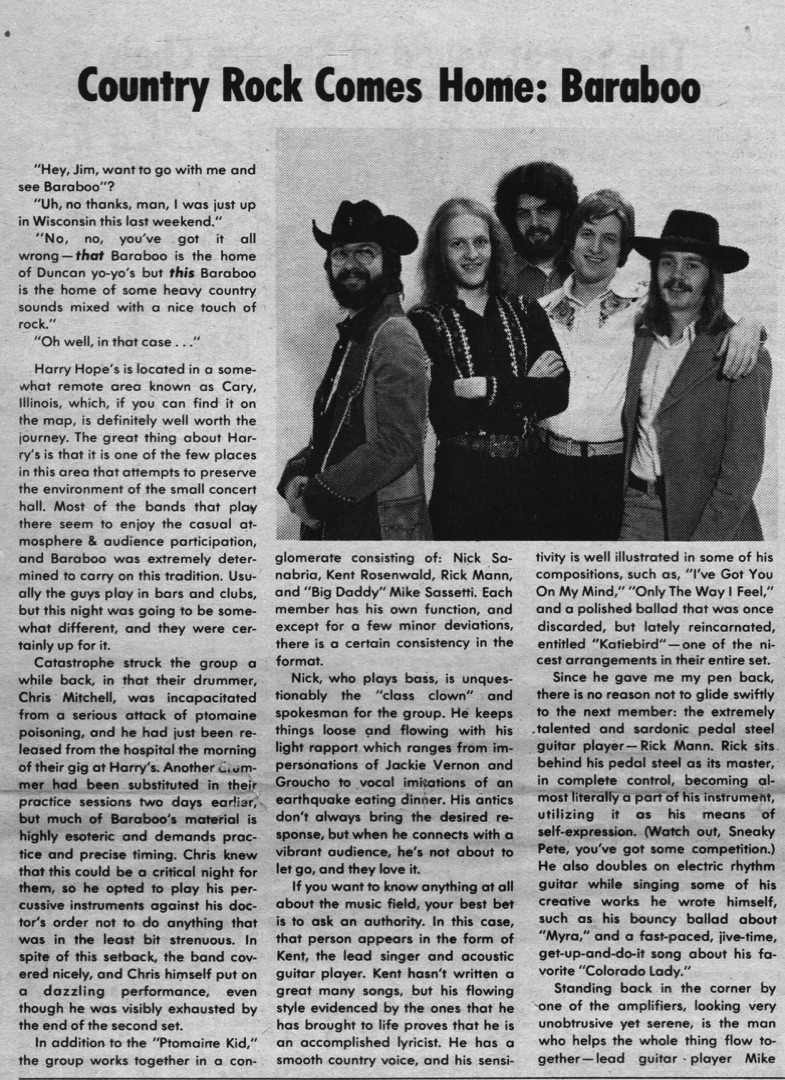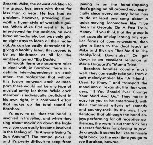 This was a live recording at one of our favorite venues. We wish we could give credit to whomever recorded us, but we just can't remember. Suffice it to say, they did a great job considering the state of mobile equipment in 1974.